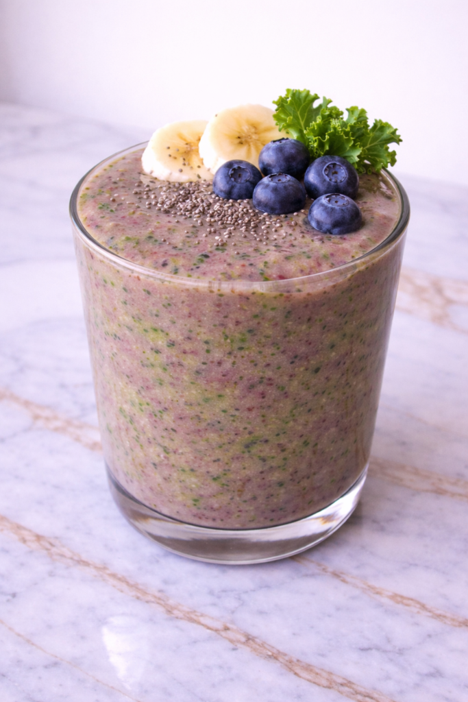This smoothie is creamy, fruity, and full of refreshing berry flavor. Bananas add sweetness and a smooth texture, while kale provides a wholesome boost without overpowering the drink.