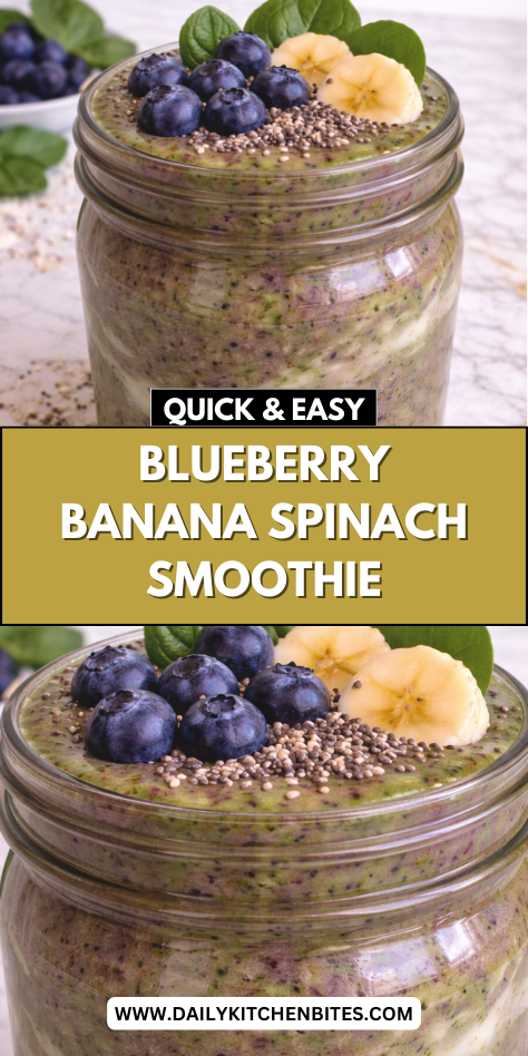 This smoothie works very well for make-ahead preparation. One easy option is to create freezer smoothie packs by combining frozen blueberries, sliced banana, and spinach in freezer-safe bags. When you’re ready to blend, simply add the liquid ingredients.