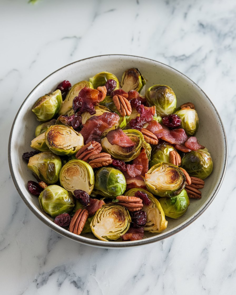 There’s something magical about the way sweet cranberries balance those earthy, caramelized Brussels sprouts – it’s like they were meant to be together on the same fork.