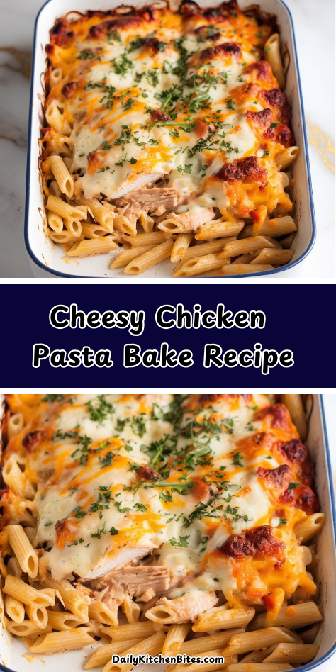 This Cheesy Chicken Pasta Bake combines tender pasta, juicy shredded chicken, and gooey cheese into one mouthwatering dish that’s practically impossible to resist.