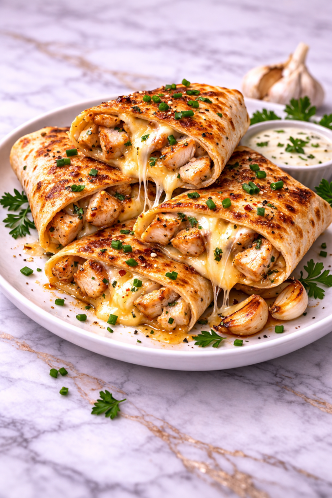 This recipe brings together everything people love in an easy handheld dinner. Tender seasoned chicken, gooey melted cheese, and buttery garlic flavor make every bite warm, savory, and satisfying.