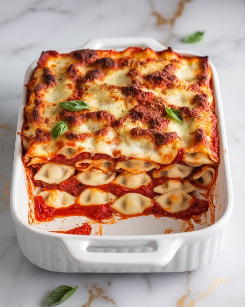 I’m talking about layers of pillowy cheese ravioli, rich marinara sauce, and three different cheeses that melt together into pure magic.
