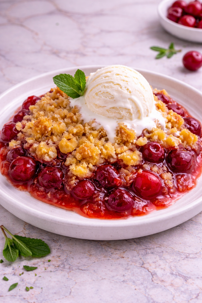 Serve warm with a scoop of vanilla ice cream for the classic pairing. The melting ice cream balances the sweet cherry filling perfectly.