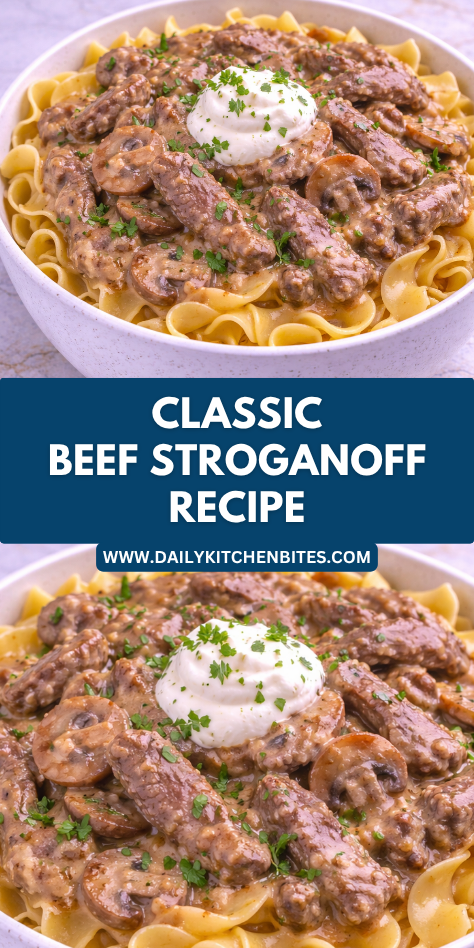 This recipe is rich, creamy, and full of comforting flavor. Tender beef and mushrooms simmer in a savory sauce finished with sour cream for the signature stroganoff taste.