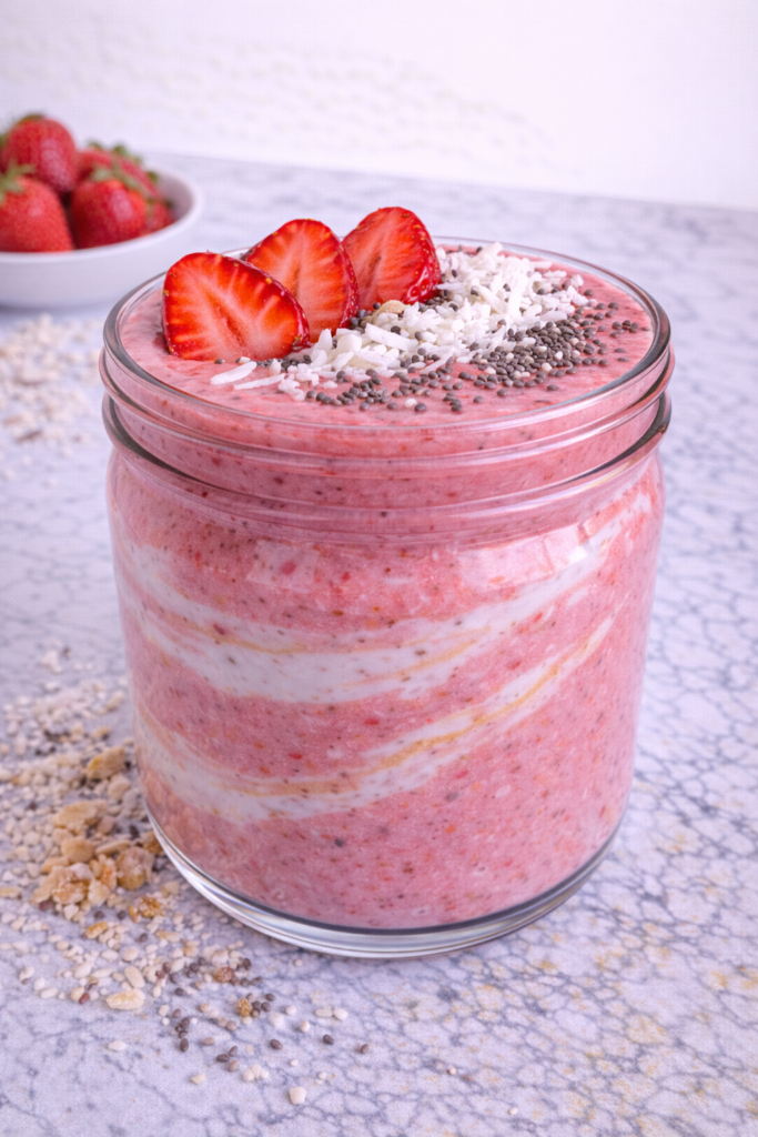 The strawberries bring a bright, fruity sweetness that feels classic and comforting, while the coconut adds a soft richness that rounds everything out. It tastes a little like a treat, a little like a vacation, and still manages to feel wholesome and nourishing.