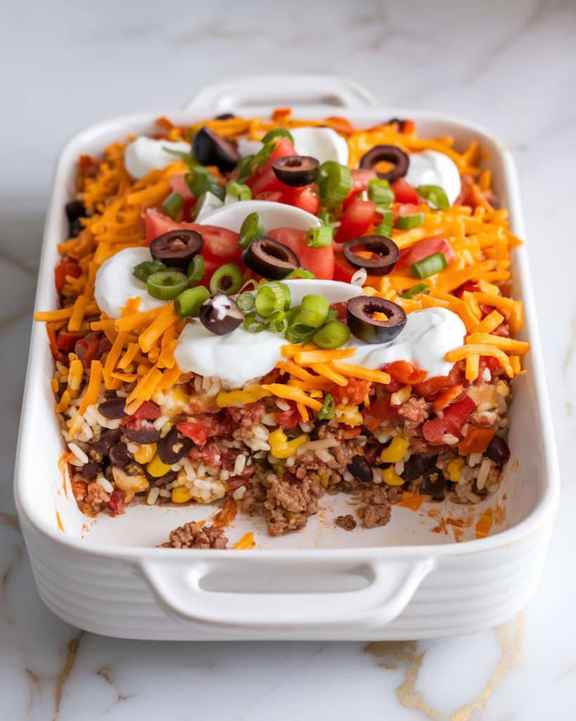 There’s something magical about the combination of seasoned ground beef, fluffy rice, and those bold Mexican spices all baking together in one dish.