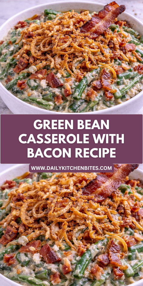 Green Bean Casserole with Bacon brings together creamy comfort, tender vegetables, and smoky flavor in a dish that always feels welcome at the table. The crisp topping and rich filling make it memorable from the first bite to the last.