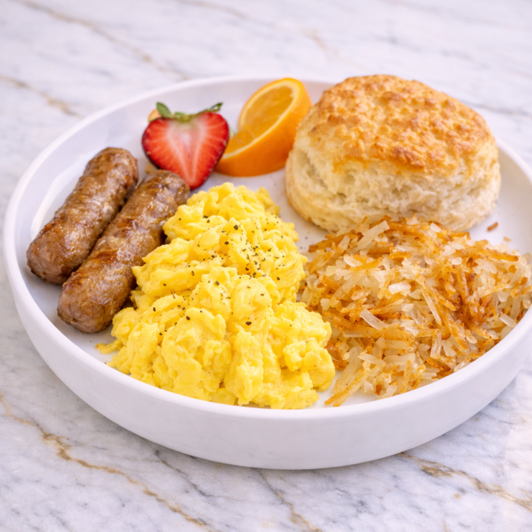 That crispy bacon and fluffy egg tucked inside a warm, flaky biscuit creates a breakfast that sets the whole morning up on exactly the right note.