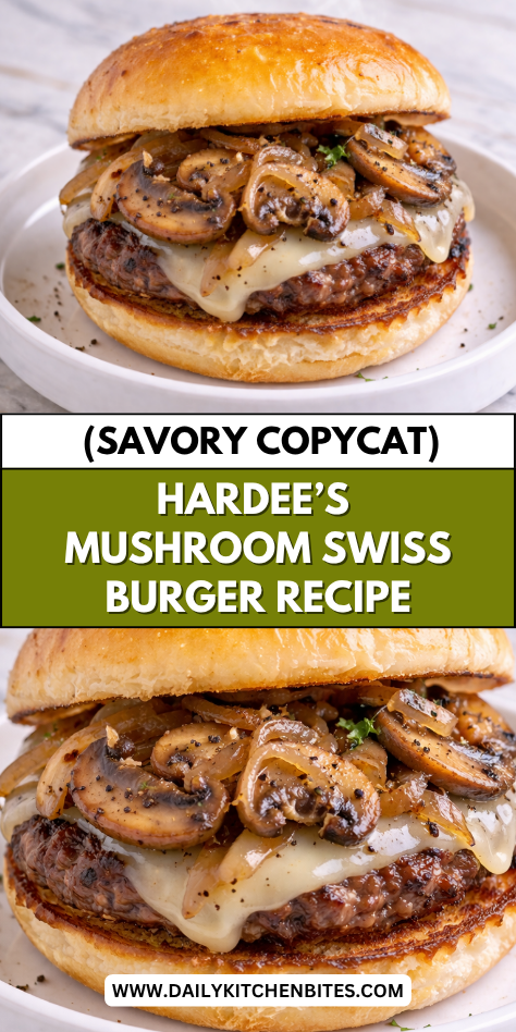 This Hardee’s Mushroom Swiss Burger is easy to prepare ahead of time, making it a great option for busy evenings or planned gatherings. You can shape the burger patties up to a day in advance and store them covered in the refrigerator. This helps save time and allows the meat to hold its shape better أثناء cooking.