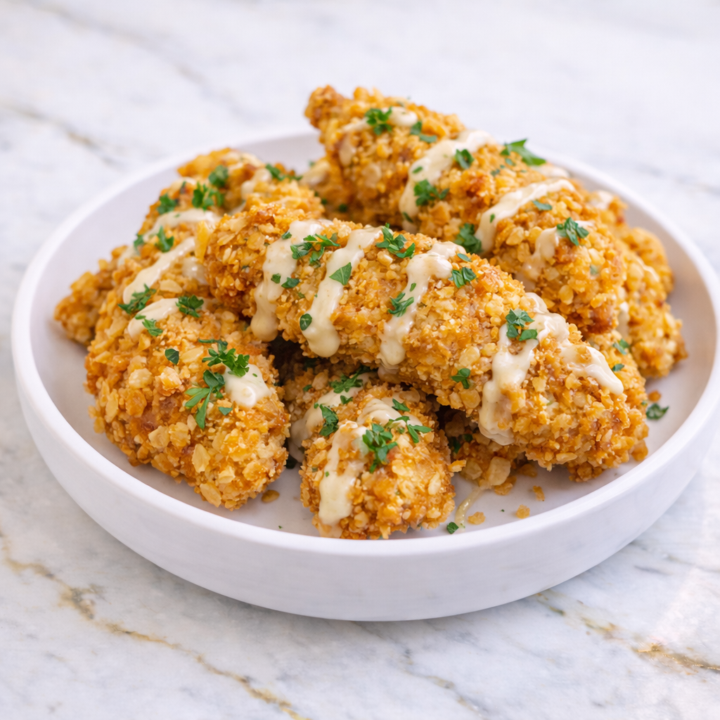 Serve the chicken tenders hot with your favorite dipping sauces. Enjoy them fresh for the best crunch. They’re perfect for sharing.