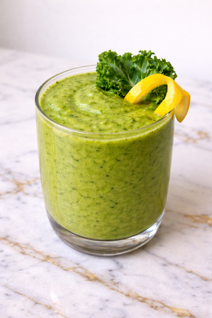 This Healthy Green Smoothie offers a gentle way to add more fruits and vegetables to your day. Spinach and kale provide fiber, vitamins, and antioxidants that support overall wellness.