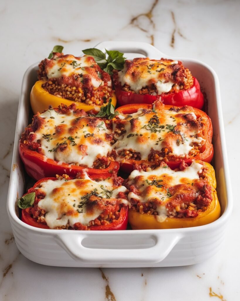 There’s something undeniably satisfying about cutting into these colorful, cheese-topped peppers and watching all those delicious flavors come together on your plate.