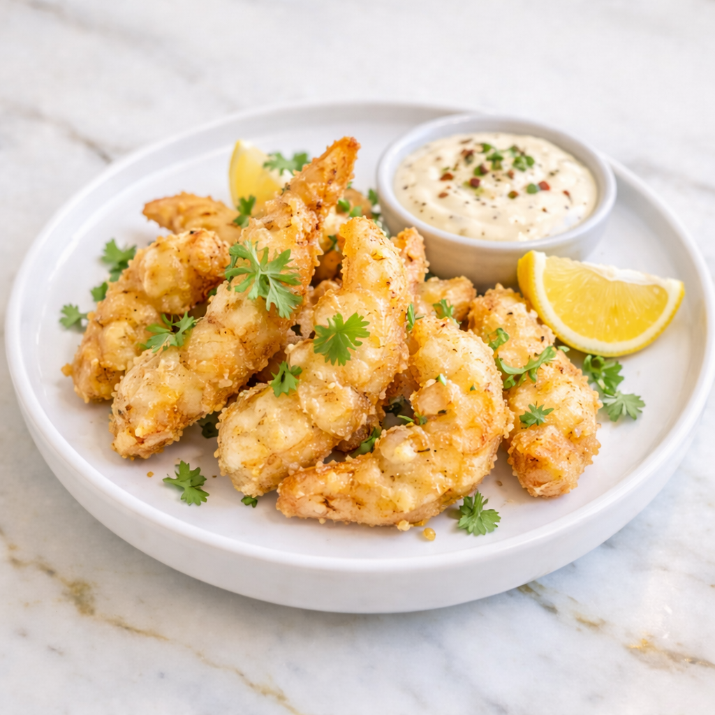 Shrimp coated in a light, crispy crust with a creamy Kewpie mayo sauce is one of those combinations that sounds simple but delivers way more than you expect.