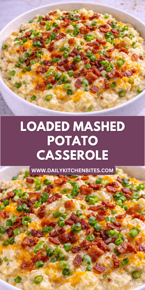 Loaded Mashed Potato Casserole is rich, creamy, cheesy, and full of classic comfort-food flavor. Every bite has fluffy potatoes, savory bacon, melted cheese, and a touch of freshness from green onions or chives.