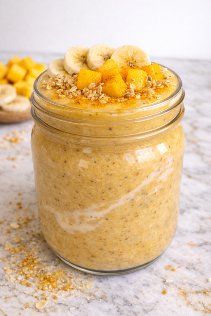What makes this smoothie so special is how naturally balanced it feels. The mango brings tropical sweetness and sunshine-like flavor, the banana adds creaminess and familiarity, and the oats turn it into something that actually sticks with you.