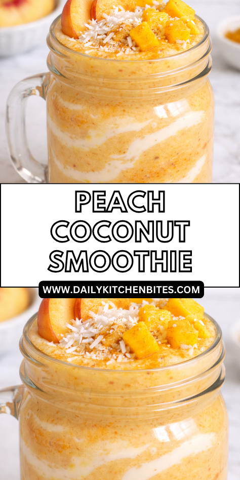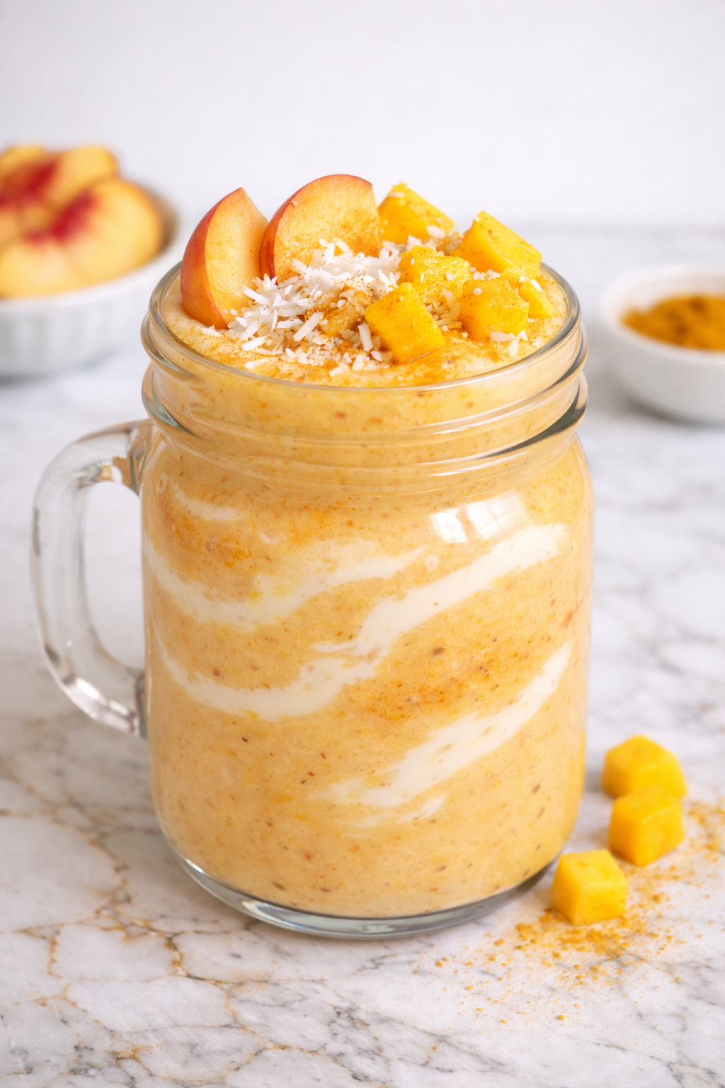 This peach coconut smoothie is creamy, refreshing, and beautifully smooth. The peaches provide a mellow sweetness and soft texture, while the coconut adds warmth and richness without overpowering the fruit.