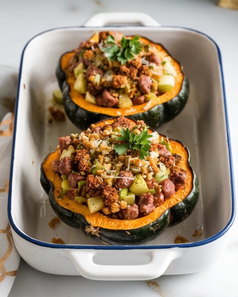 For an extra layer of flavor, consider adding fresh herbs like sage or thyme to the stuffing mixture—they’ll complement the sweetness of the squash and the savory sausage perfectly.
