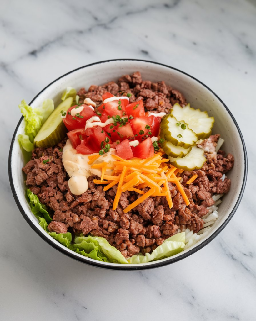 Don’t forget that you can absolutely personalize these delicious bowls with optional toppings like pickles, ketchup, or mustard—whatever your burger-loving heart desires.