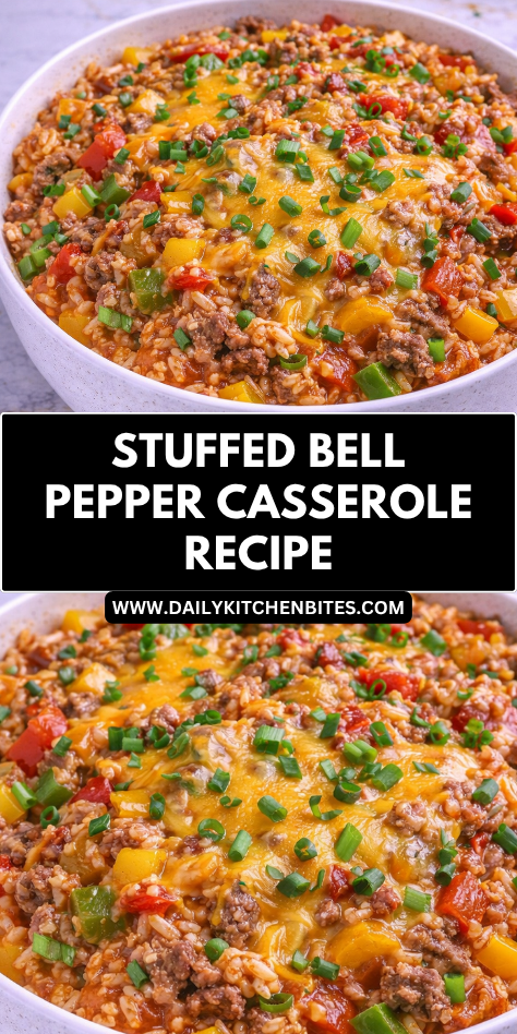 This casserole is hearty, savory, and full of classic stuffed pepper flavor. Every bite combines seasoned meat, rice, tomatoes, peppers, and melted cheese in one comforting dish.