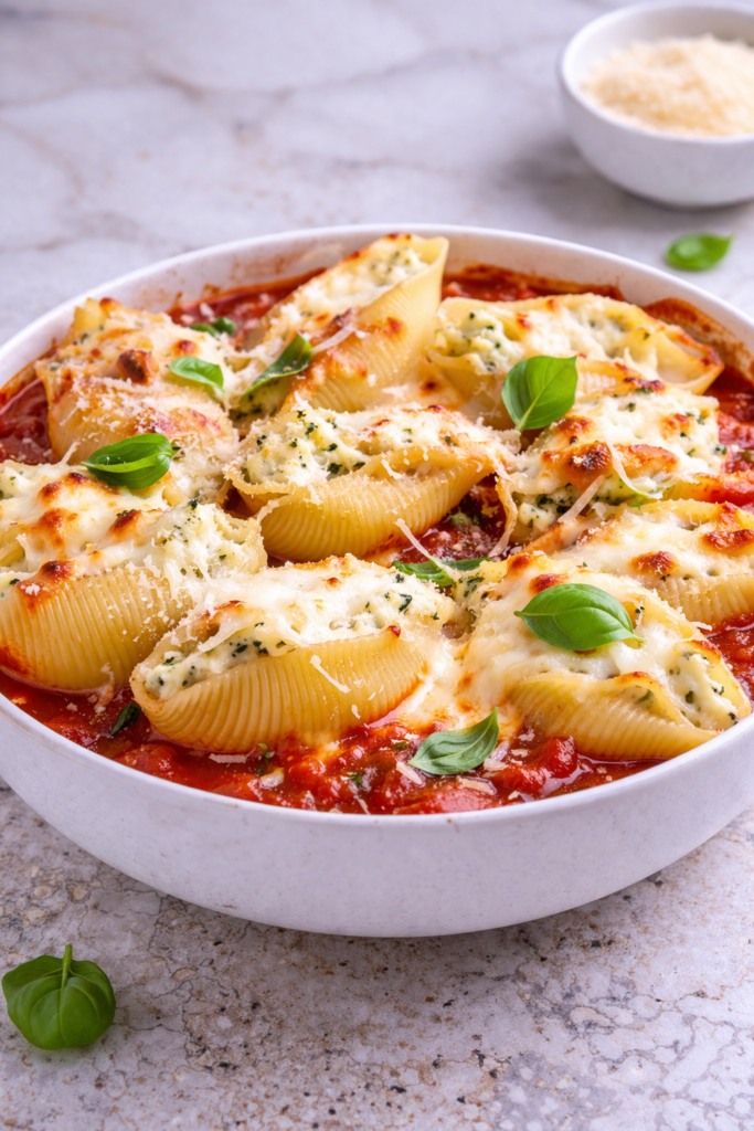 Stuffed Shells can also be turned into a vegetable-forward meal by adding finely chopped zucchini, mushrooms, or kale to the filling or sauce. This is a practical way to add more produce while keeping the meal comforting.