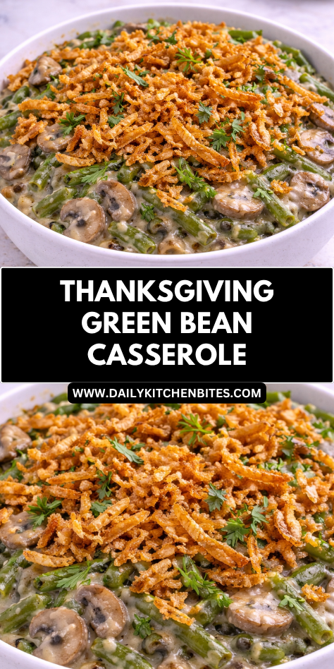 Another reason to love this casserole is how adaptable it can be. You can use fresh, frozen, or canned green beans, make it richer with extra mushrooms, or add cheese for a fun variation. However you prepare it, it always feels right at home on the Thanksgiving table.