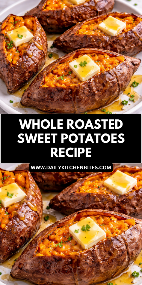 Serve Whole Roasted Sweet Potatoes alongside roasted chicken, grilled steak, pork chops, or baked fish. Their natural sweetness pairs beautifully with savory main dishes.